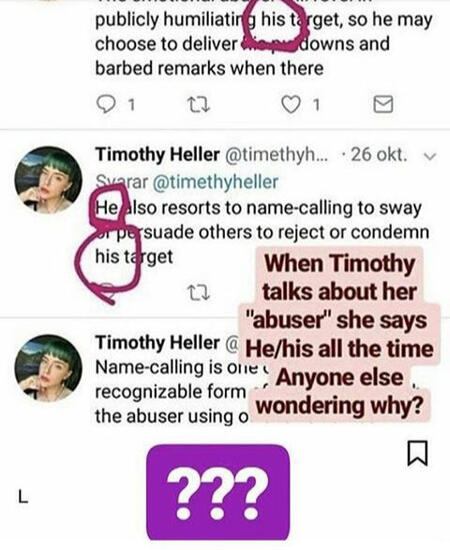 3. Referring to her abuser as "he/him"